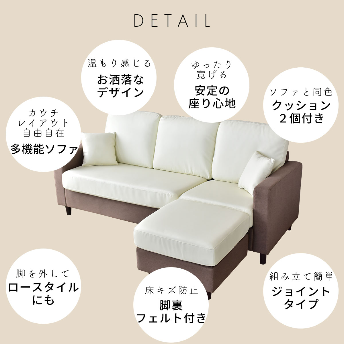配送について 送料 無料 (北海道+25,000円・沖縄・離島・一部地域見積り) ◆商品名 カウチソファ 【Optimo】 ◆サイズ 本体/約:幅190×奥行79×高さ33.5〜42.5(cm) オットマン/約:幅56×奥行56×高さ33.5〜42.5(cm) ◆材質・重量 【表面材】 【ブラック/グレー】ファブリック/合成皮革 【ブラウン/ホワイト】ファブリック/合成皮革 【グレー/ホワイト】ファブリック/合成皮革 【グリーン】ファブリック 【サンレッド】ファブリック 【ネイビーブルー】ファブリック 【構造部材】 天然木・合板・ウレタンフォーム・綿・不織布・ウェイビングベルト Sバネ(連結式鋼製組バネ)・ポリプロピレン 【本体重量】:本体・約40kg 【総重量(梱包材等含む)】:(2-1)24kg/(2-2)28kg【2梱包】 ◆備考 他商品との同梱は出来かねます。
