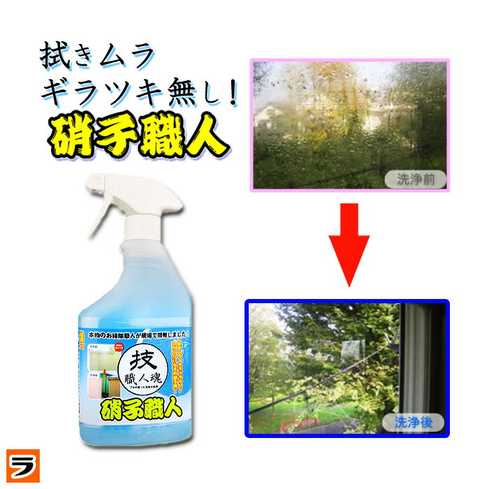 技職人魂 硝子職人 スプレーボトル 500ml窓拭き・鏡・メガネクリーナーにも使える スクイジー要らず プロのガラスクリーナー 硝子用洗剤【 窓 ガラス 掃除 車 汚れ クリーナー 】