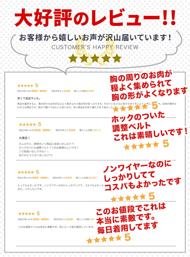 SPEC 素材綿83% ポリウレタン17% 伸縮性あり 生地の厚さ普通 透け感なし 仕様ワイヤー:無し ホック:サイド 2段3列 パッド:あり ストラップ:調整不可 着用方法 step1,こちらのナイトブラは足から履きます! step2,アンダーバストまで持ち上げ肩紐をかけ位置を調整します step3,前かがみの体勢で脇や背中の贅肉を胸に集め形を整えます step4,クロスベルトは外したまま、まっすぐに立ち脇肉を寄せあげるように片方づつベルトを装着 step5,最後にバストの形を整えて完成です! サイズ 【S】 A65/B65/C65/A70/B70相当 参考:カップ/アンダー A/65-70 B/65-70 C/65-70 D/65-70 【M】 A70/B70/C70/D70/A75/B75相当 参考:カップ/アンダー A/70-75 B/70-75 C/70-75 D/70-75 【L】 C75/D75/A80/B80/C80/D80/A85/B85相当 参考:カップ/アンダー A/80-85 B/80-85 C/80 D/80 【XL】 C85/D85/A90/B90/C90/D90相当 参考:カップ/アンダー A/90 B/90 C/85-90 D/85-90 【XXL】 C90/D90/A95/B95/C95/D95相当 ※サイズはあくまで目安となります カラー ブラック、ピンク、サーモンピンク、パープル、グレー インフォメーション生産国MADE IN CHINA ご注意 ※しっかりと補正したい方は小さめ、締め付けが苦手な方は大きめをお選びください。