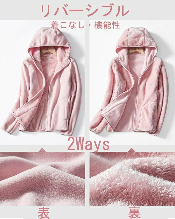 もこもこ リバーシブル パーカー ファスナー 裏返し 2ways ふわふわ メンズ レディース 大きいサイズ おしゃれ 男女兼用 ポケット付き アウター 羽織り 秋冬コート ボア ブルゾン 防寒 ボリューム カジュアル 通勤 通学 デート お出かけ dw021zezex2