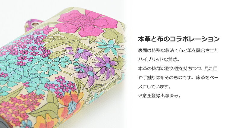 ※意匠登録出願済み 使用している革はトコ革です、布部分は花柄がかわいいリバティブランドを使用しています。